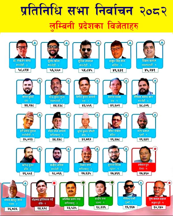 लुम्बिनी प्रदेशमा फागुन २१ गते सम्पन्न प्रतिनिधिसभा निर्वाचनमा Rastriya Swatantra Party ले उल्लेखनीय सफलता हासिल गरेको छ। प्रदेशका कुल २६ निर्वाचन क्षेत्रमध्ये २१ क्षेत्रमा जित हासिल गर्दै पार्टीले प्रदेशभर आफ्नो बलियो उपस्थिति देखाएको हो। निर्वाचन आयोगका प्रारम्भिक नतिजाअनुसार Lumbini Province का १२ जिल्लामा सम्पन्न निर्वाचनमा रास्वपाका उम्मेदवारहरू अधिकांश क्षेत्रमा विजयी भएका छन्। बाँकी पाँच सिटमध्ये Nepali Congress ले दुई सिट, Communist Party of Nepal ले एक सिट तथा अन्य दलहरूले दुई सिट जितेका छन्। विशेषगरी रुपन्देही जिल्लामा रास्वपाले सबै पाँच निर्वाचन क्षेत्रमा जित निकाल्दै ऐतिहासिक नतिजा हासिल गरेको छ। रुपन्देही–१, २, ३, ४ र ५ मा रास्वपाका उम्मेदवारहरू विजयी भएका छन्।